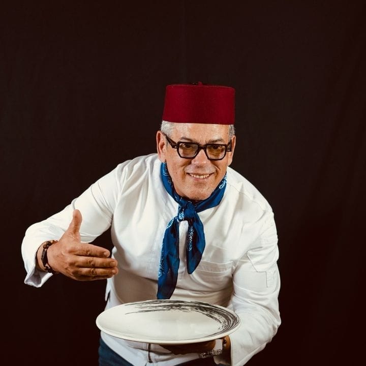 Petit-fils de Haj Abdelkrim Raïs, figure de la musique arabo-andalouse, il grandit dans un univers où culture et transmission allaient de pair. Cet héritage, Chef Kimo l’a prolongé à travers ses créations gastronomiques, mais aussi sur scène avec le groupe « Frères Laâbi », mêlant saveurs et mélodies.